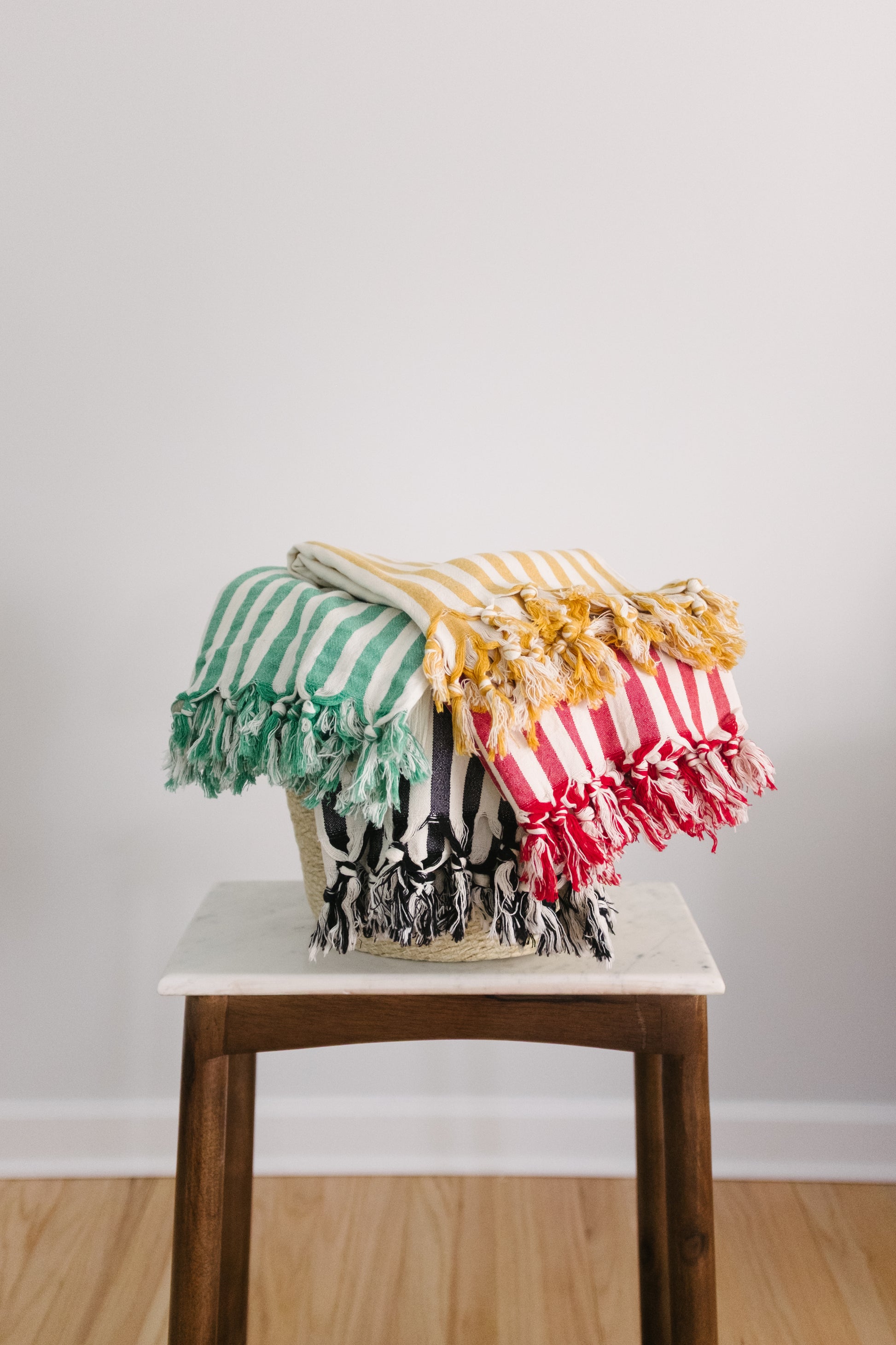 Bring sunshine into your everyday with the playful Cabana Stripe Peshtemal. Traditionally woven in Türkiye from 100% cotton, this lightweight and absorbent towel is perfect for poolside lounging, beach days, or adding a pop of color at home. The classic cabana stripes in yellow, green, red, and black, they all keep you cool and stylish wherever you go.