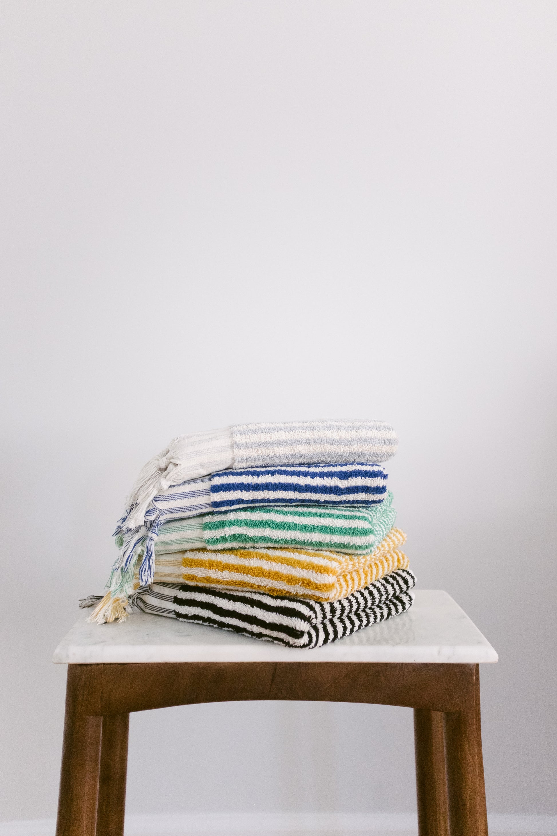 Handwoven in Türkiye from 100% cotton, the Metrostripe Hand Towel is thick, soft, and highly absorbent—perfect for daily use in the bath or as a stylish accent piece. Its woven stripes bring a pop of color and texture, while hand-tied fringes add a refined finish. Measuring 17" x 36", it’s versatile in size and only gets softer and more absorbent with every wash. Pair it with PixelDot towels or matching bath towels for a thoughtful gift set or a coordinated look in your home.